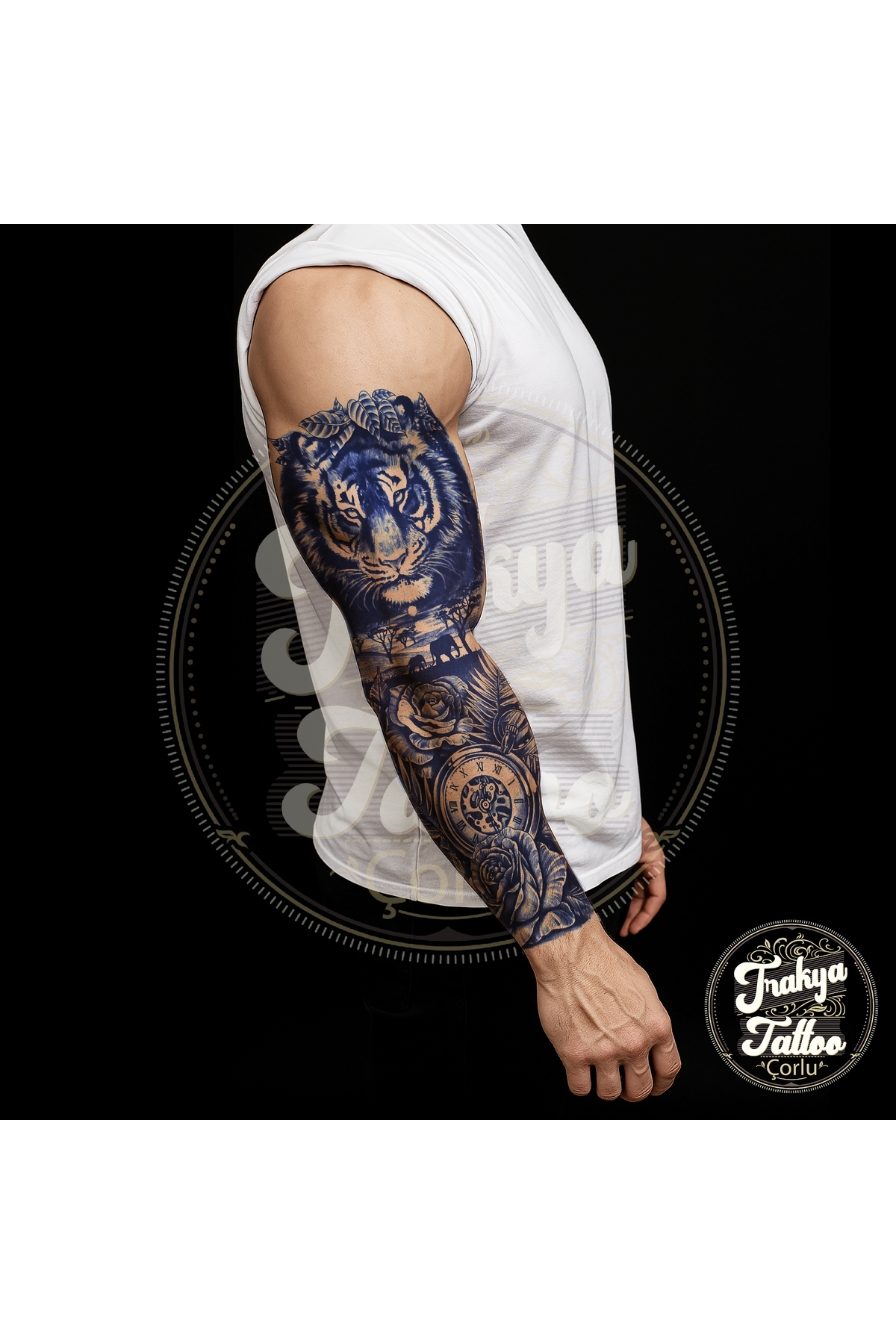 1 Ay Kalıcı Dövme Geçici Tam Kol Kaplama Kaplan Gül Dövme